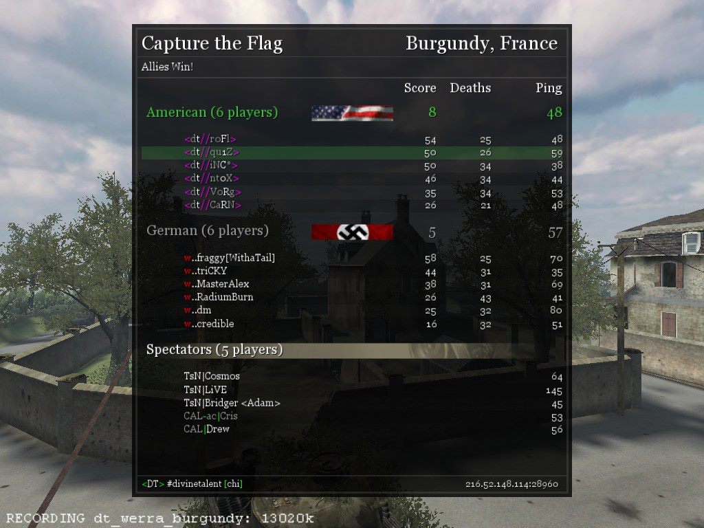 in Call of Duty United Offensive Deathmatch. qu1Z's clan <DT> reigned